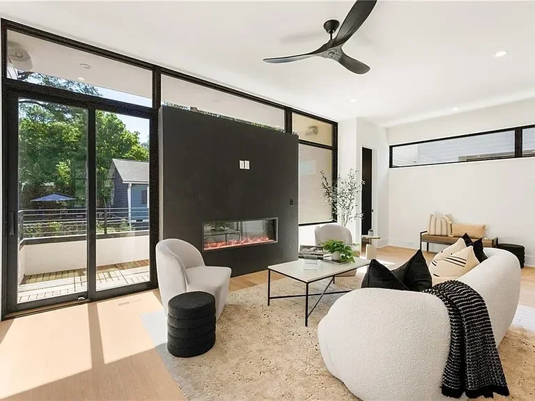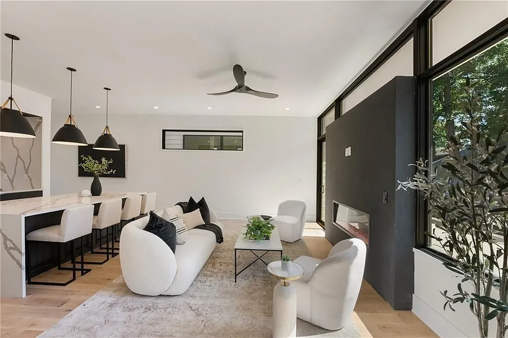 Dramatic modern fireplace anchoring the main living space